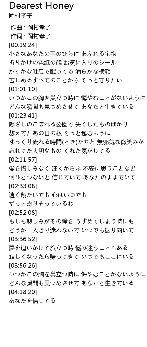 | [00:00.00] | 作曲 : 岡村孝子 |