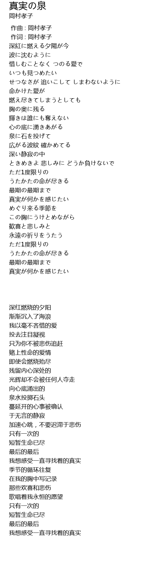 | Song | 真実の泉 |