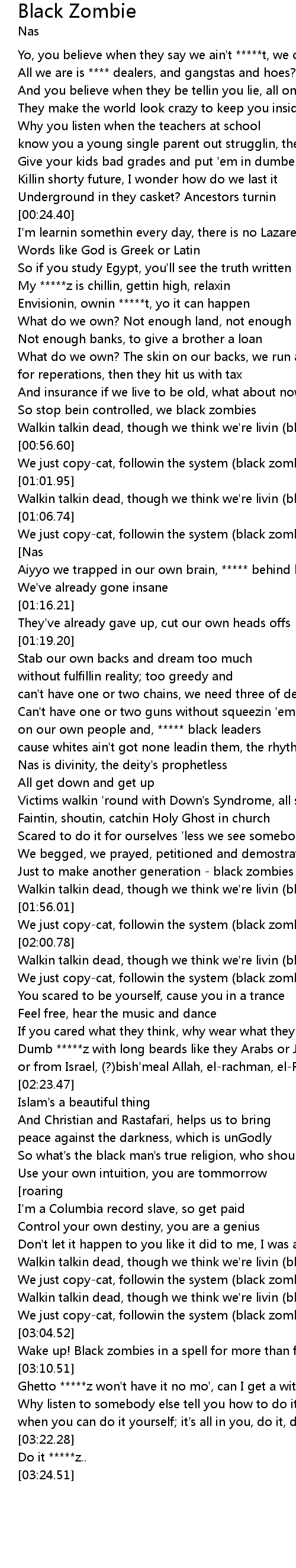 Walkin talkin dead, though we think we're livin (black zombies) |