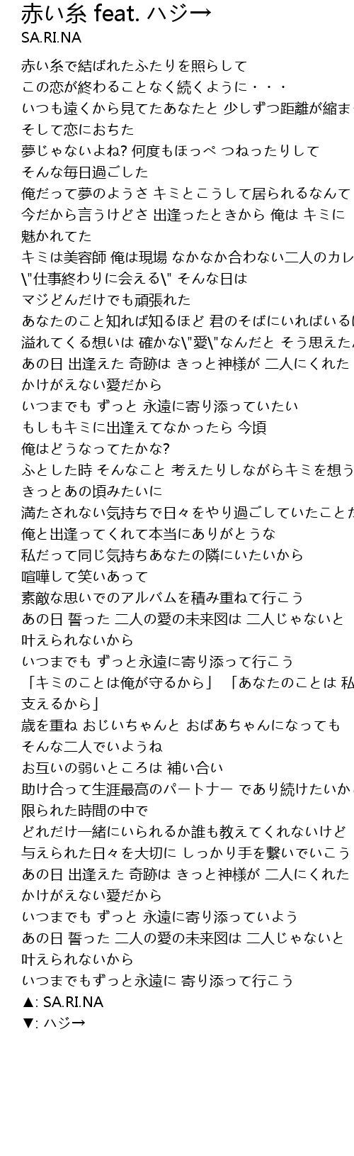 | Song | 赤い糸 feat. ハジ→ |