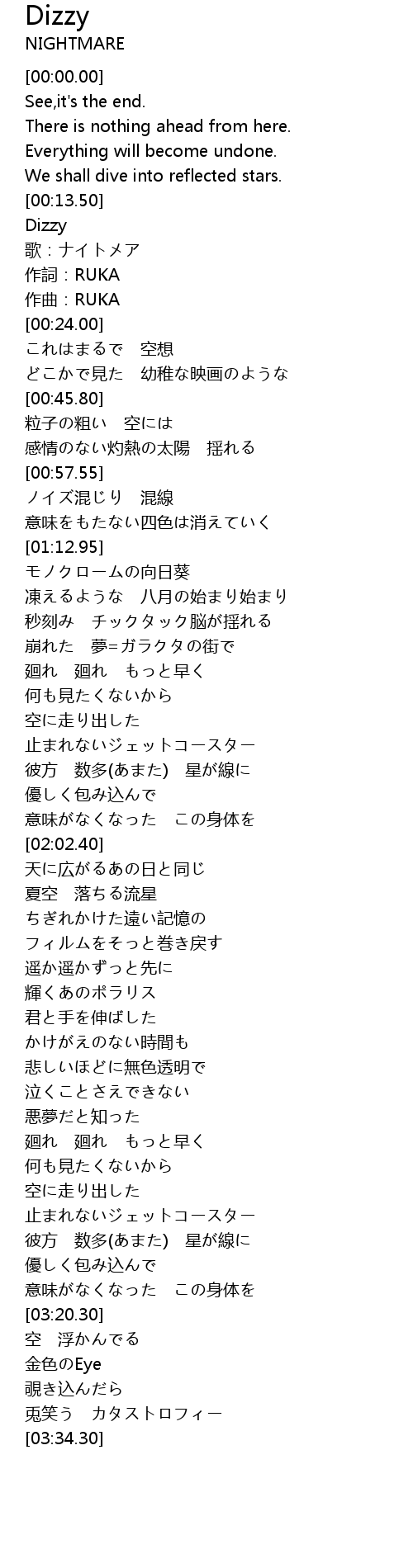 | [01:33.45] | 崩れた 夢=ガラクタの街で |
