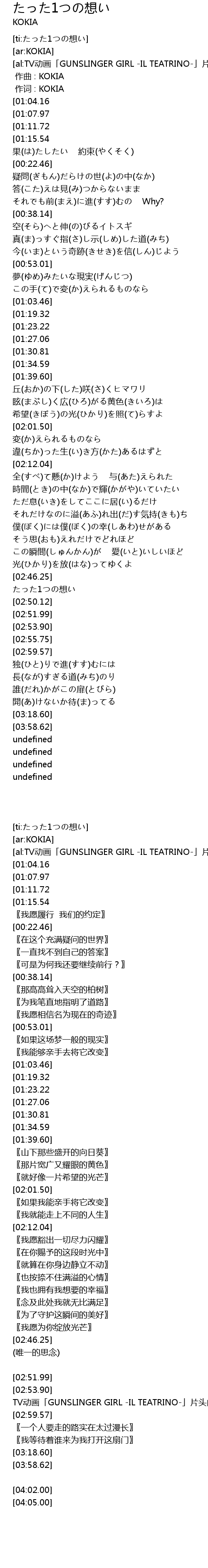 | [02:48.18] | たった1つの想い |