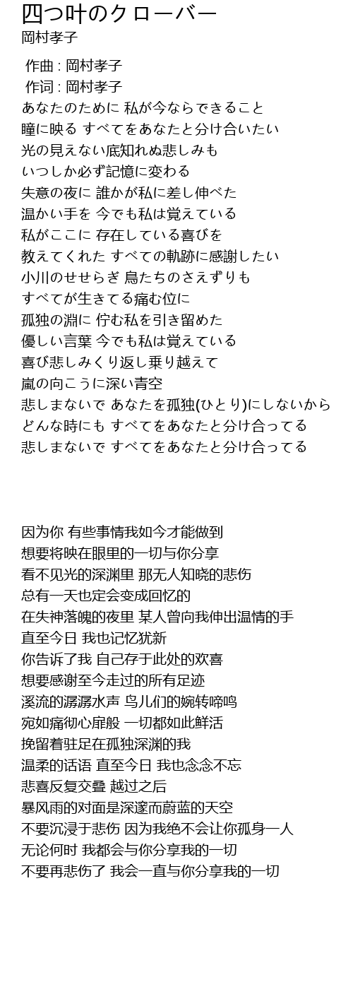 | [03:45.38] | どんな時にも すべてをあなたと分け合ってる |
