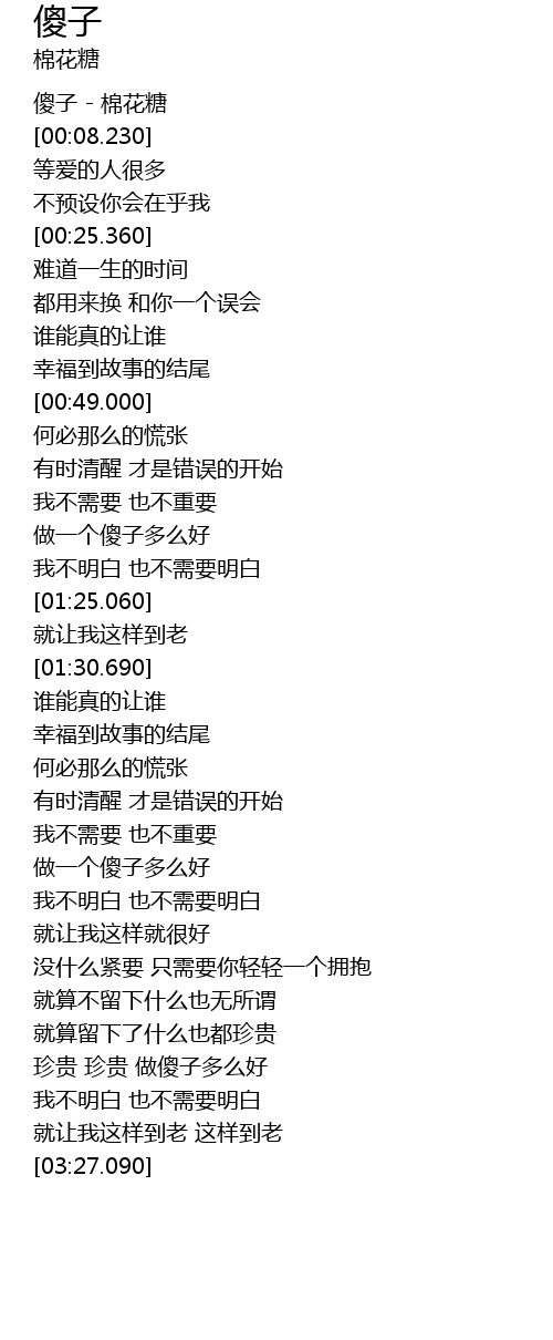 | [00:00.480] | 傻子 - 棉花糖 |