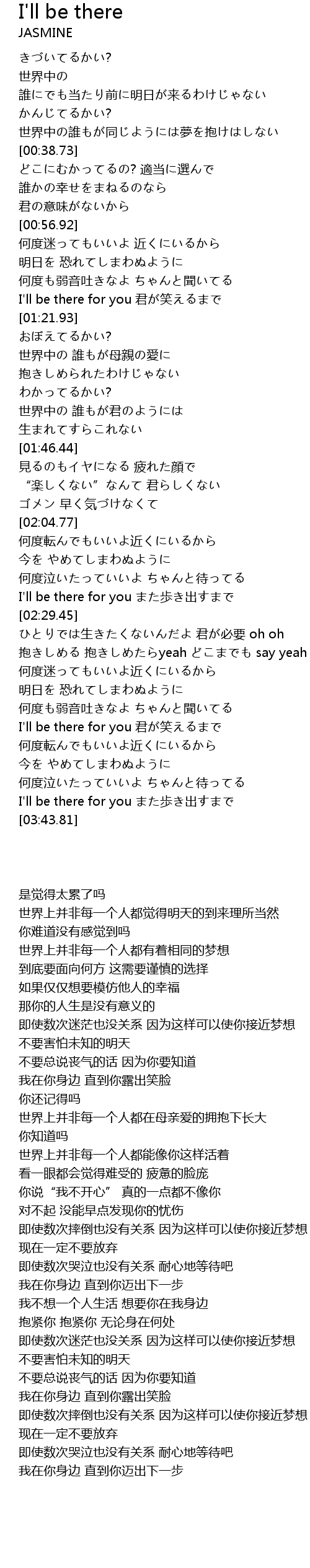 | [03:37.76] | I' ll be there for you bù chū |