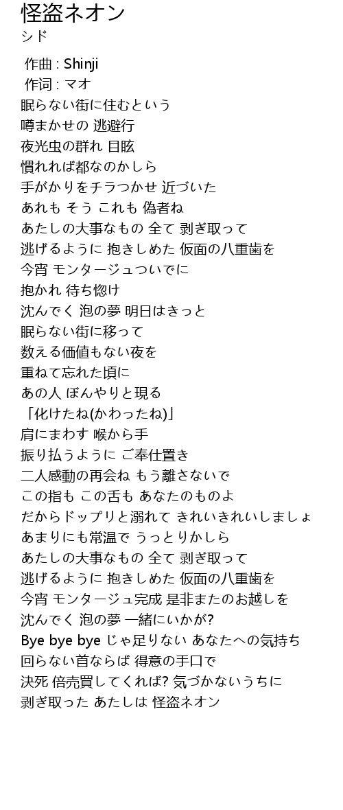 | [03:21.440] | 剥ぎ取った あたしは 怪盗ネオン |