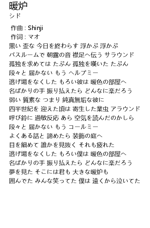 | [00:54.100] | 逃げ場をなくした もろい彼は 暖色の部屋へ |