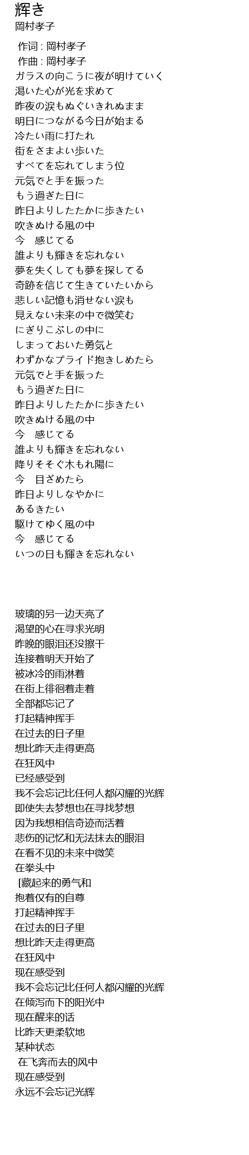 | [00:00.000] | 作词 : 岡村孝子 |
