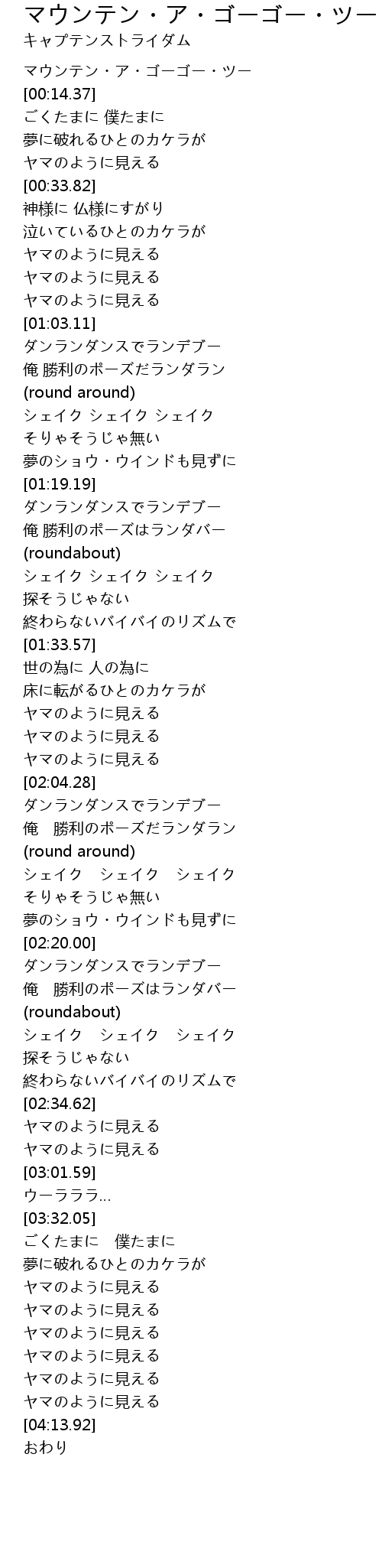 | [00:02.91] | マウンテン・ア・ゴーゴー・ツー |