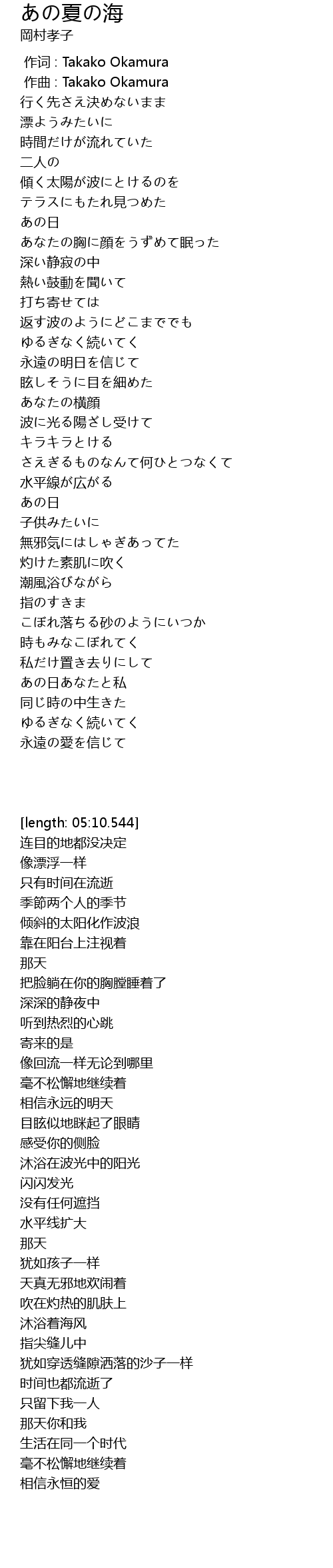 作词 : Takako Okamura |