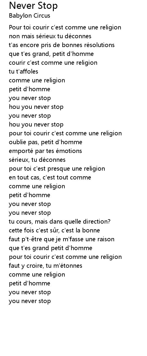 | Pour toi courir c' est comme une religion | |