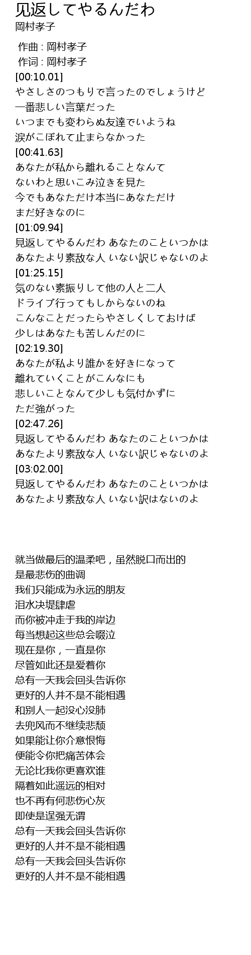 | [02:49.00] | 見返してやるんだわ あなたのこといつかは |