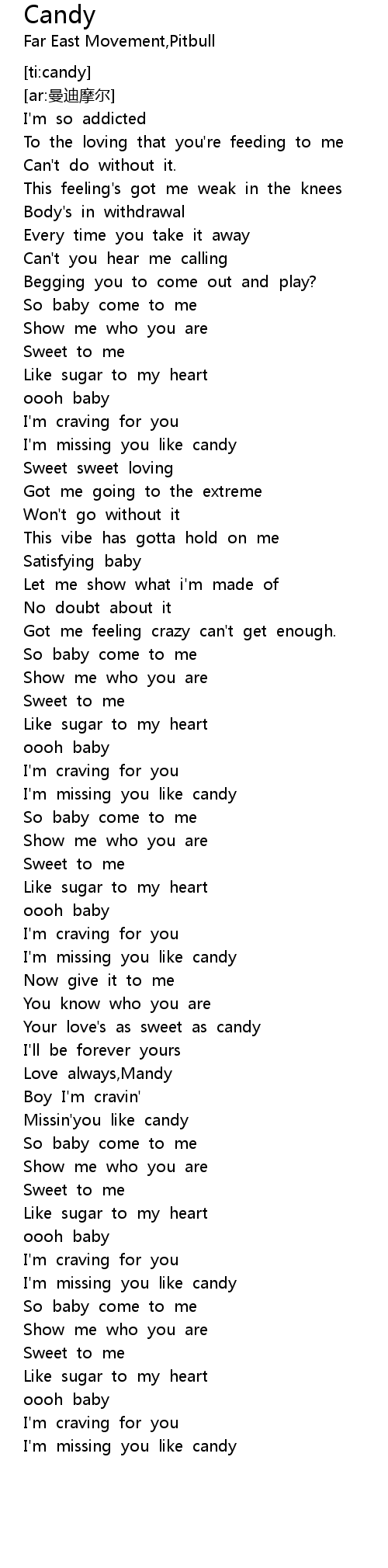 | [03:48.60] | I' m missing you like candy |