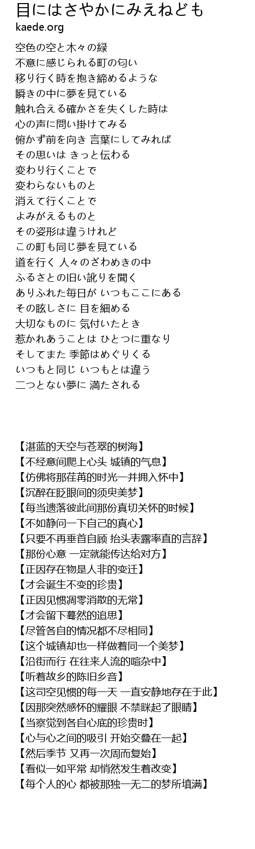 | Song | 目にはさやかにみえねども |