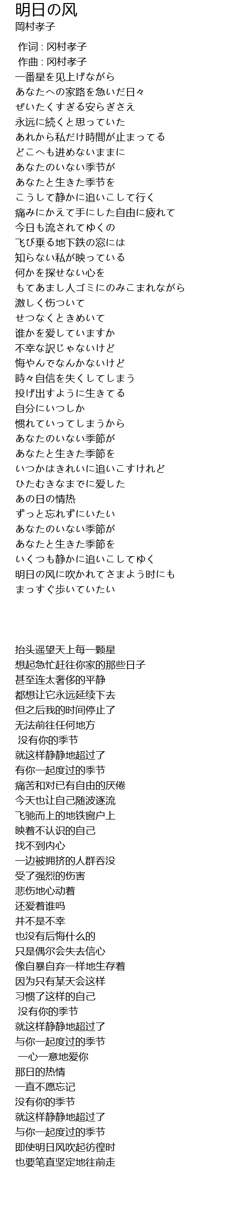 | [04:27.427] | 明日の风に吹かれてさまよう时にも |