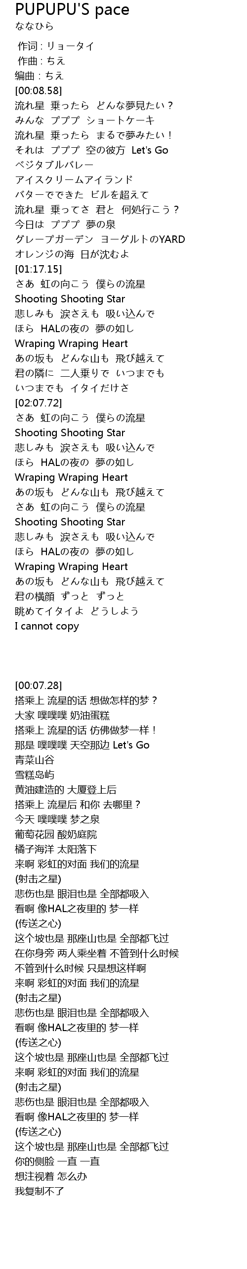 | [01:25.37] | Shooting Shooting Star |