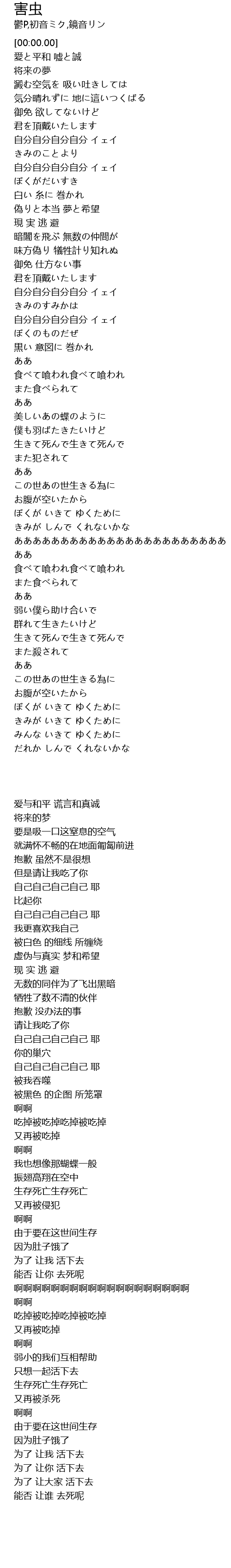 | [00:20.22] | 愛と平和 嘘と誠 |