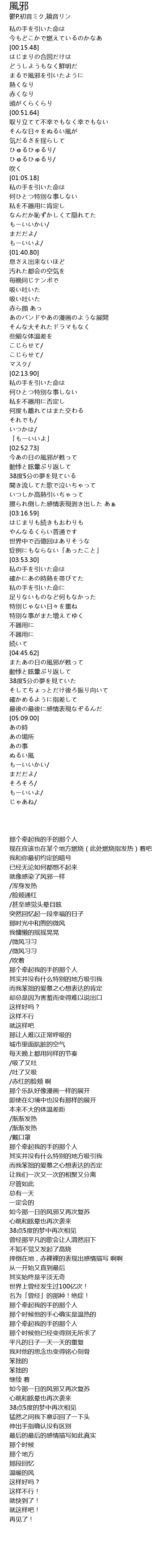 | [00:45.12] | まるで風邪を引いたように |