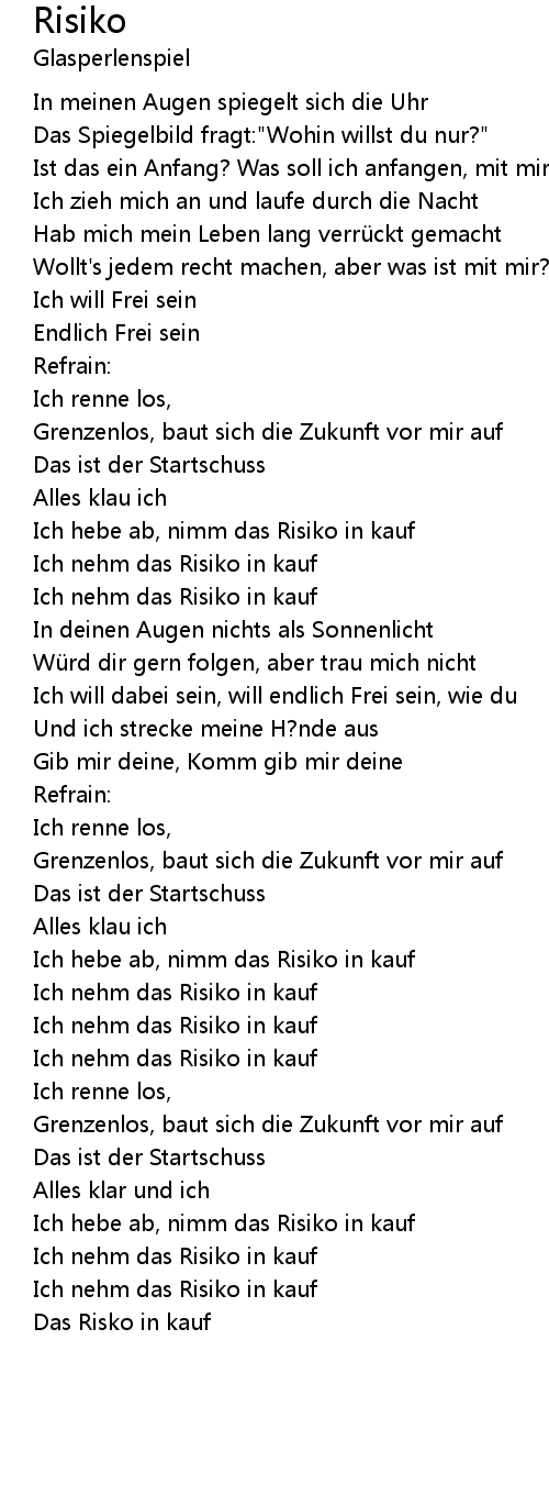 | [02:51.77] | Ich nehm das Risiko in kauf |