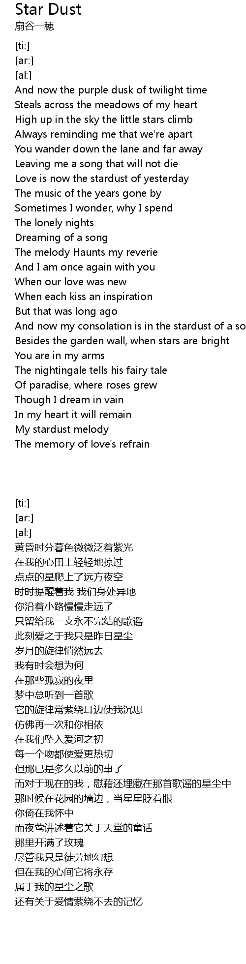 | [02:12.60] | And now my consolation is in the stardust of a song |
