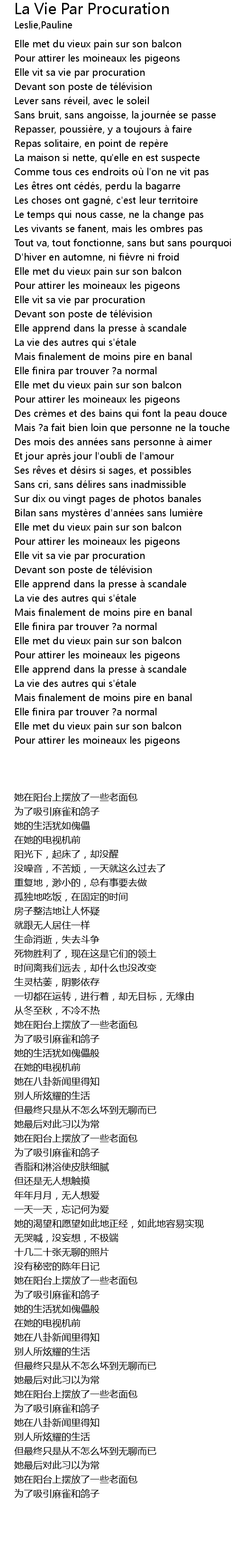 | [01:36.08] | Elle vit sa vie par procuration |