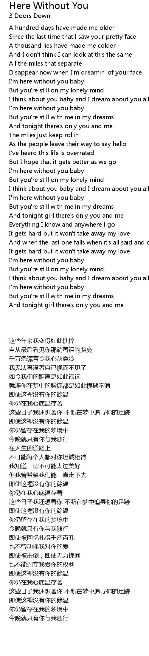 I'm here without you baby |