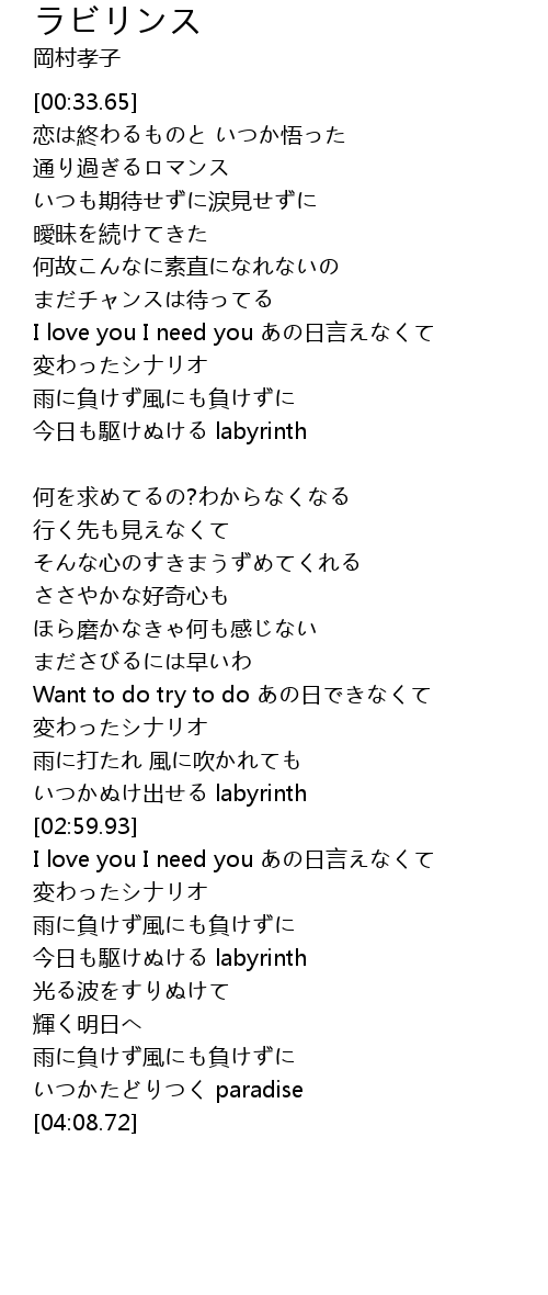 | [02:54.41] | いつかぬけ出せる labyrinth |