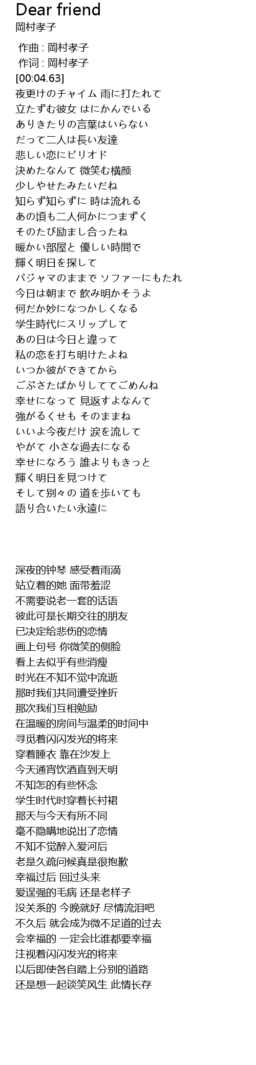 | [00:00.00] | 作曲 : 岡村孝子 |