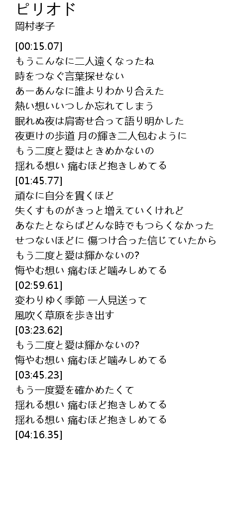 | [02:26.39] | せつないほどに 傷つけ合った信じていたから |