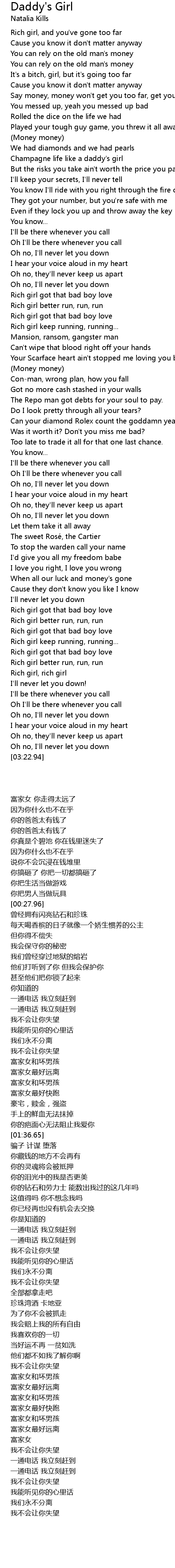 | [00:31.81] | Champagne life like a daddy's girl |