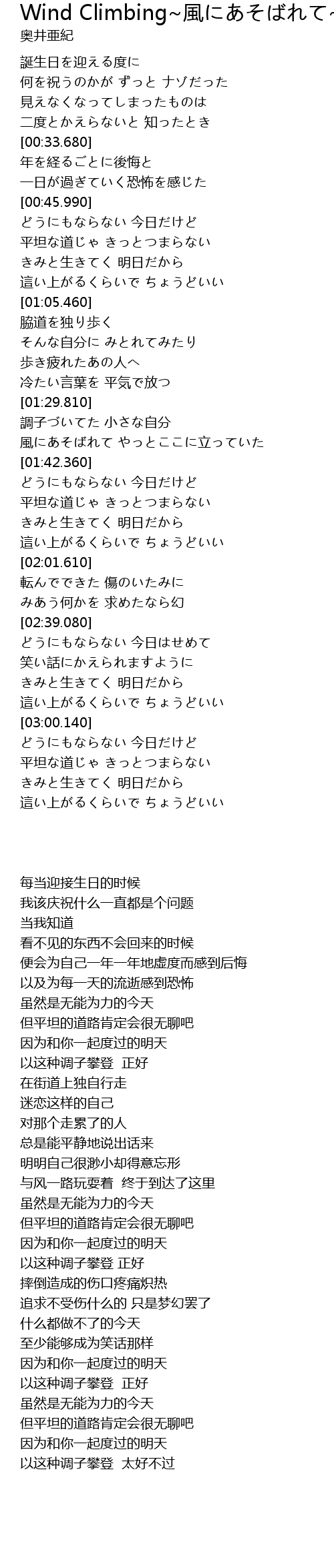 Wind Climbing feng Lyrics