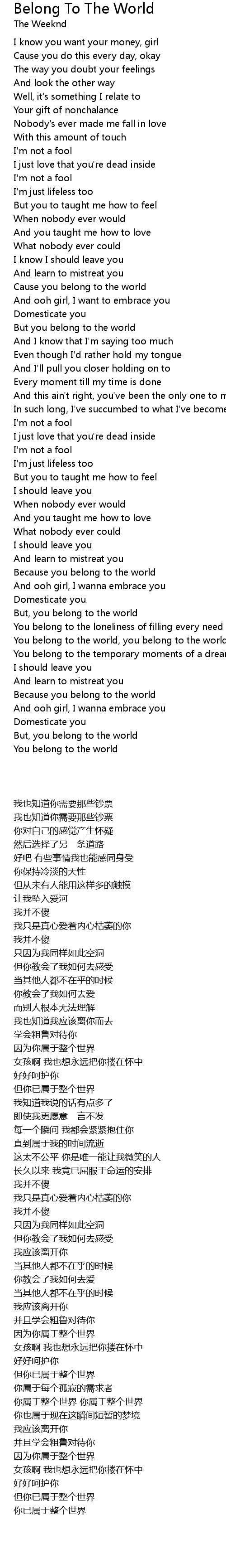 Cause you belong to the world |