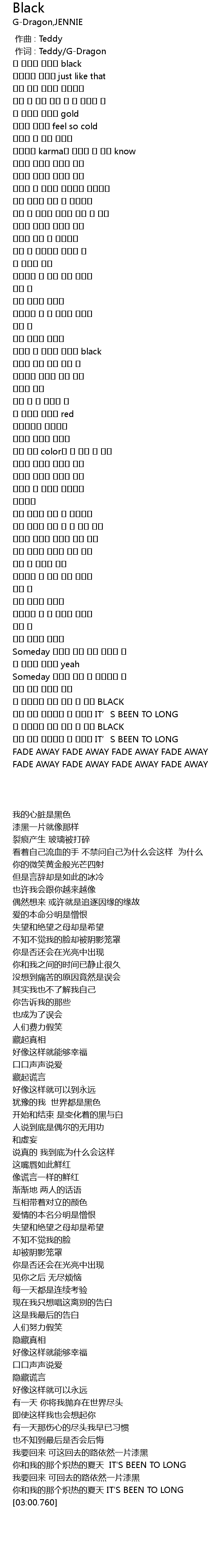 | [00:01.00] | 作词 : Teddy/G-Dragon |