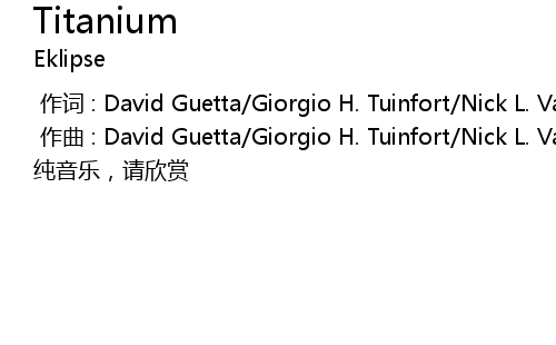 | [00:01.000] | 作曲 : David Guetta/Giorgio H. Tuinfort/Nick L. Van De Wall |