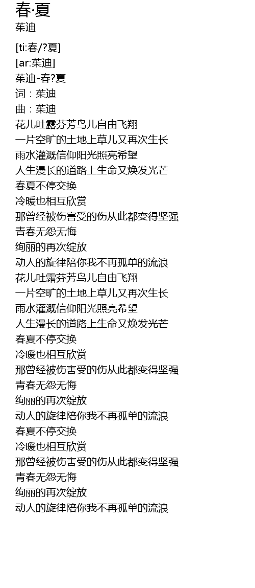 | [00:23.524] | yi pian kong kuang de tu di shang cao er you zai ci sheng zhang |