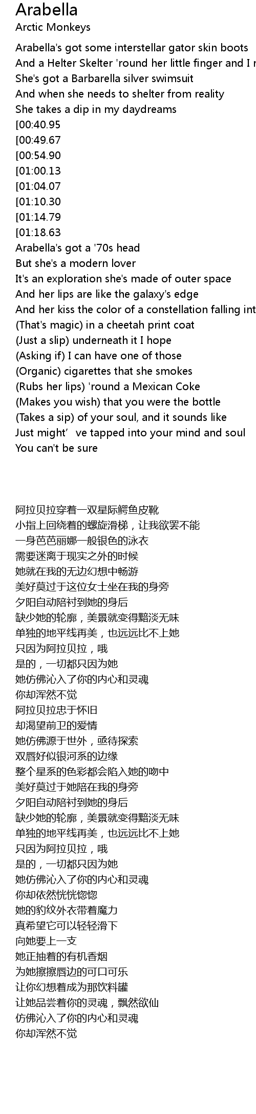 | [01:24.76] | Arabella' s got a ' 70s head |