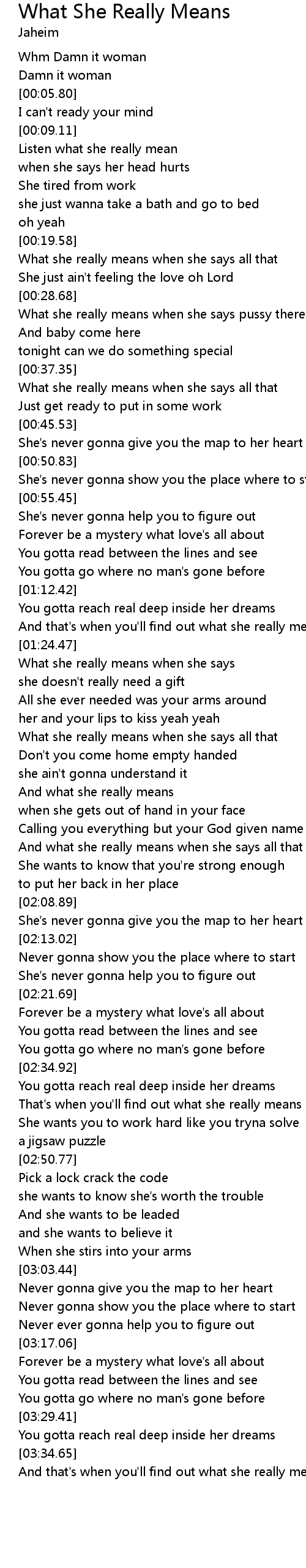 Listen what she really mean |