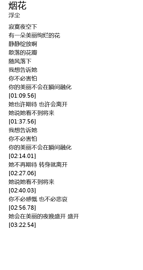 | [03:00.24] | 她会在美丽的夜晚盛开 盛开 |