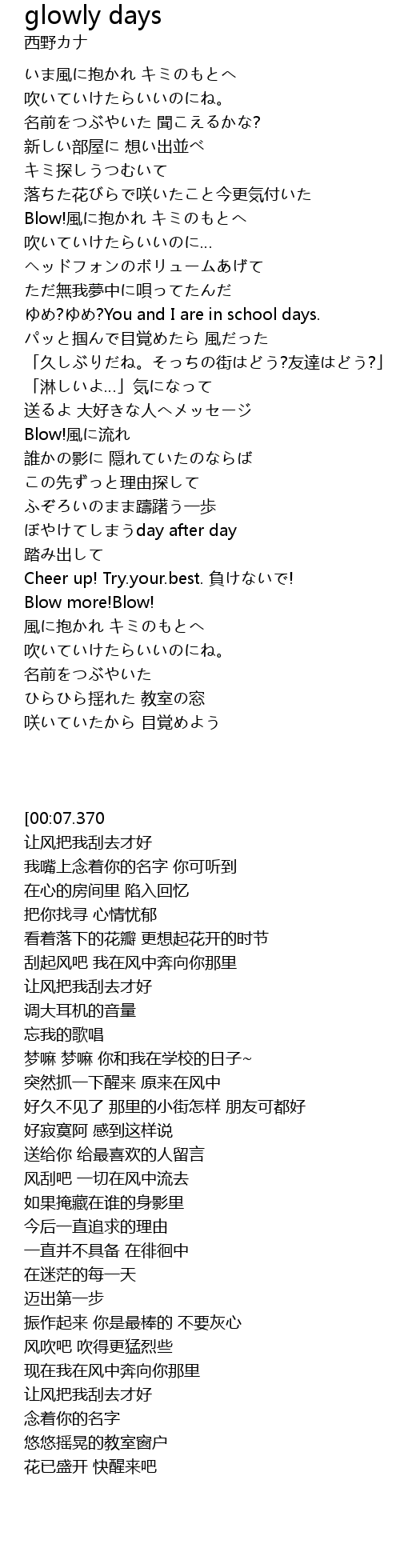 | [00:07.370] | いま風に抱かれ キミのもとへ |