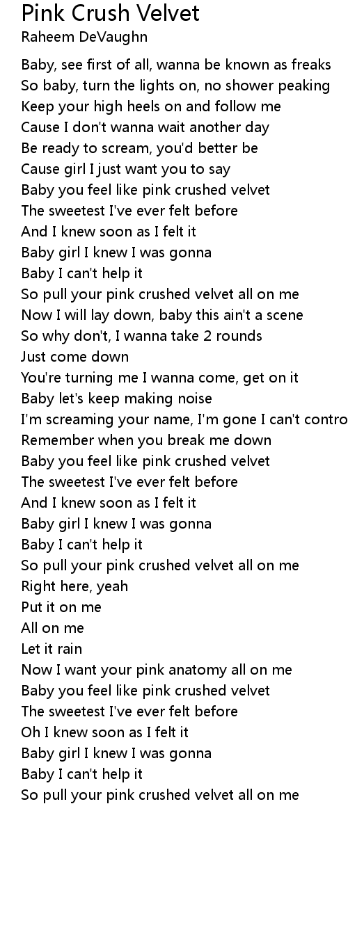 Baby you feel like pink crushed velvet |