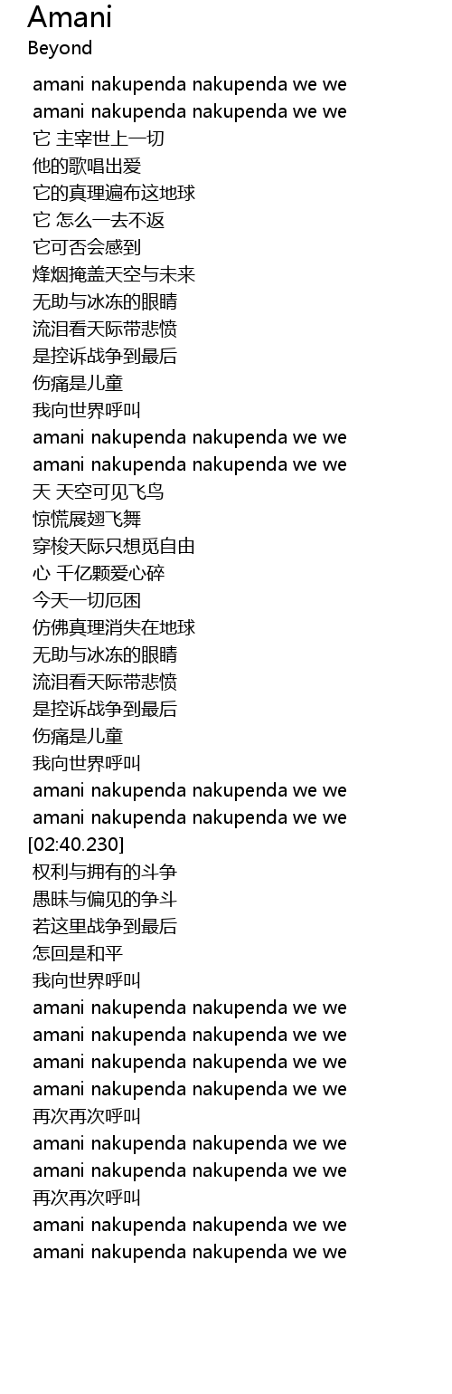 | [03:43.730] | amani nakupenda nakupenda we we |