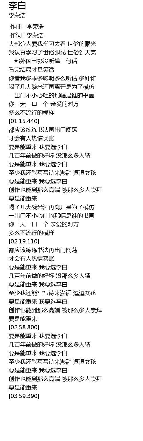| [00:00.00] | zuò qǔ : lǐ róng hào |