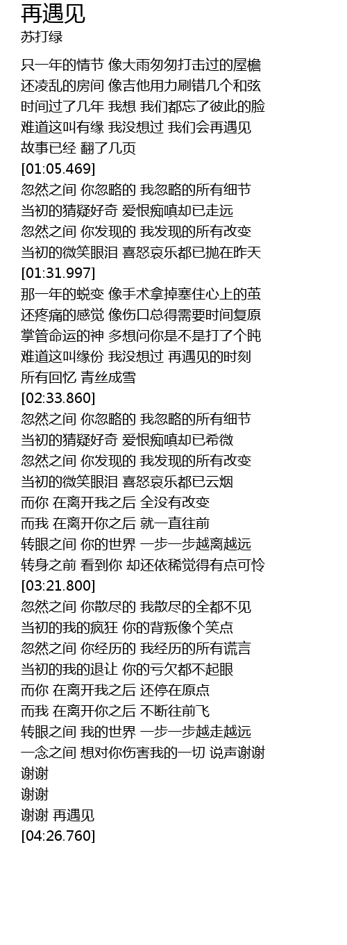 | [04:18.500] | 谢谢 再遇见 |