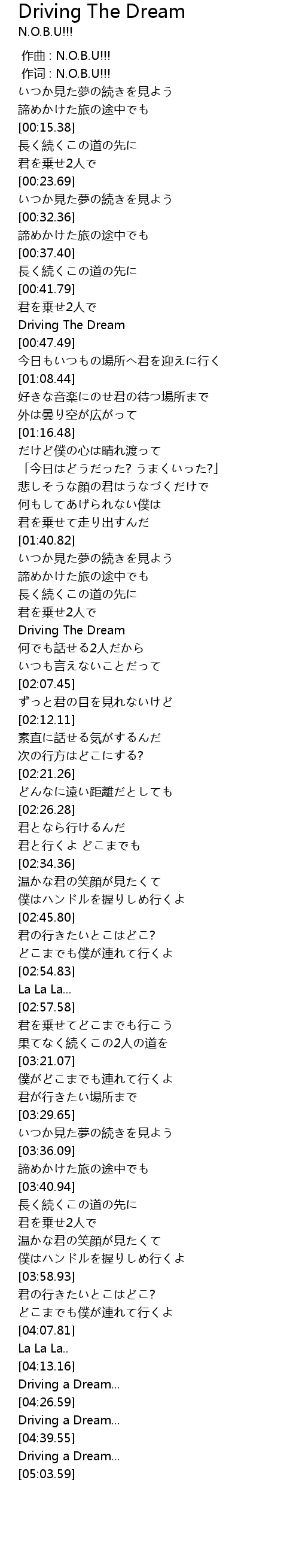 | [05:00.19] | Driving a Dream... |