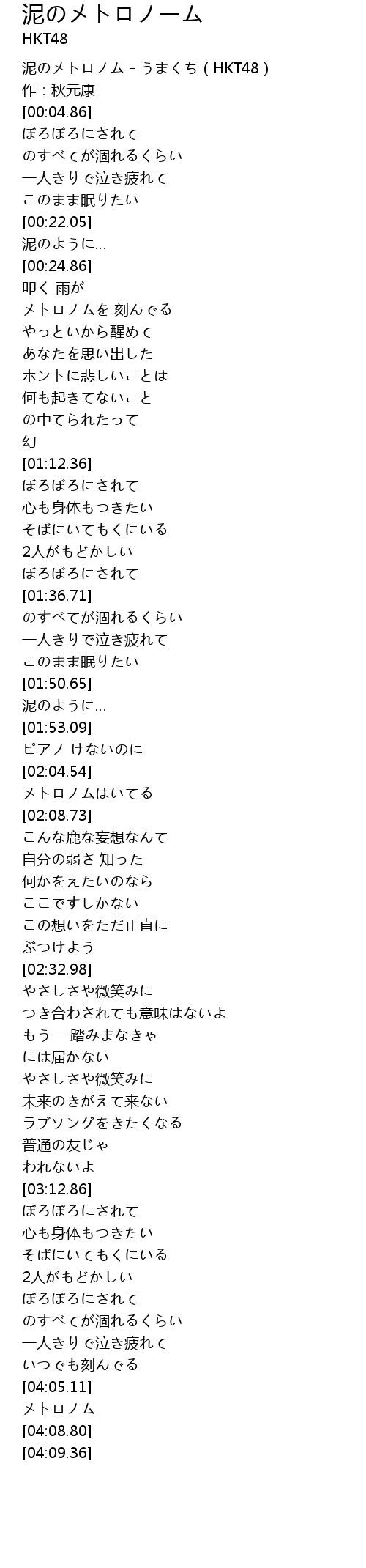 泥のメトロノム - うまくち(HKT48) |