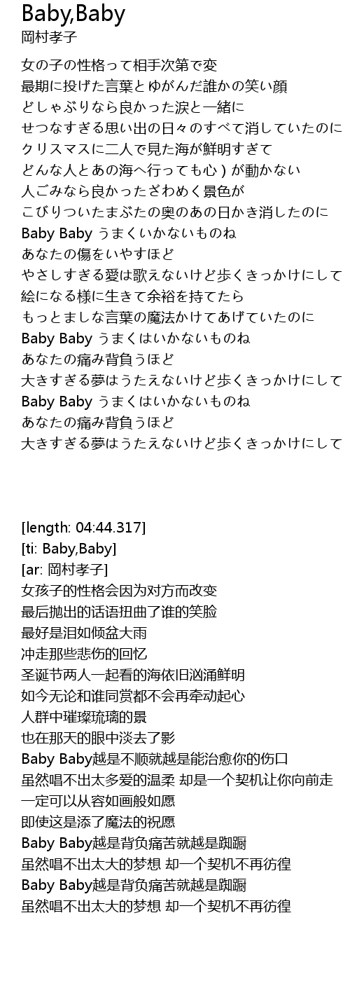 | [03:45.538] | Baby Baby うまくはいかないものね あなたの痛み背負うほど |