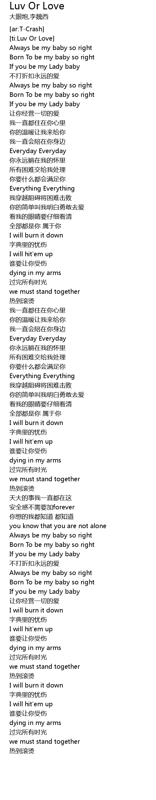 | [03:23.64] | Always be my baby so right |
