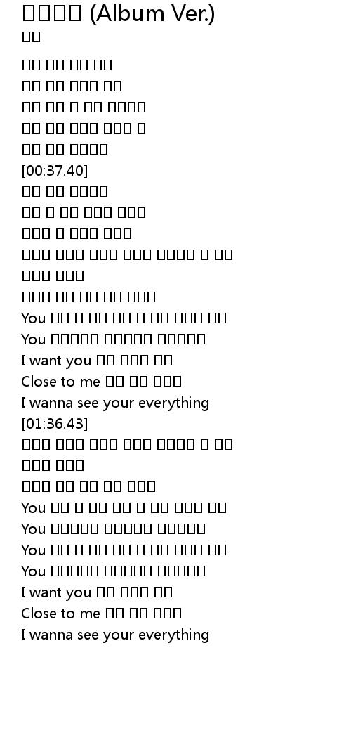 | [02:58.05] | Close to me 너의 모든 것들을 |