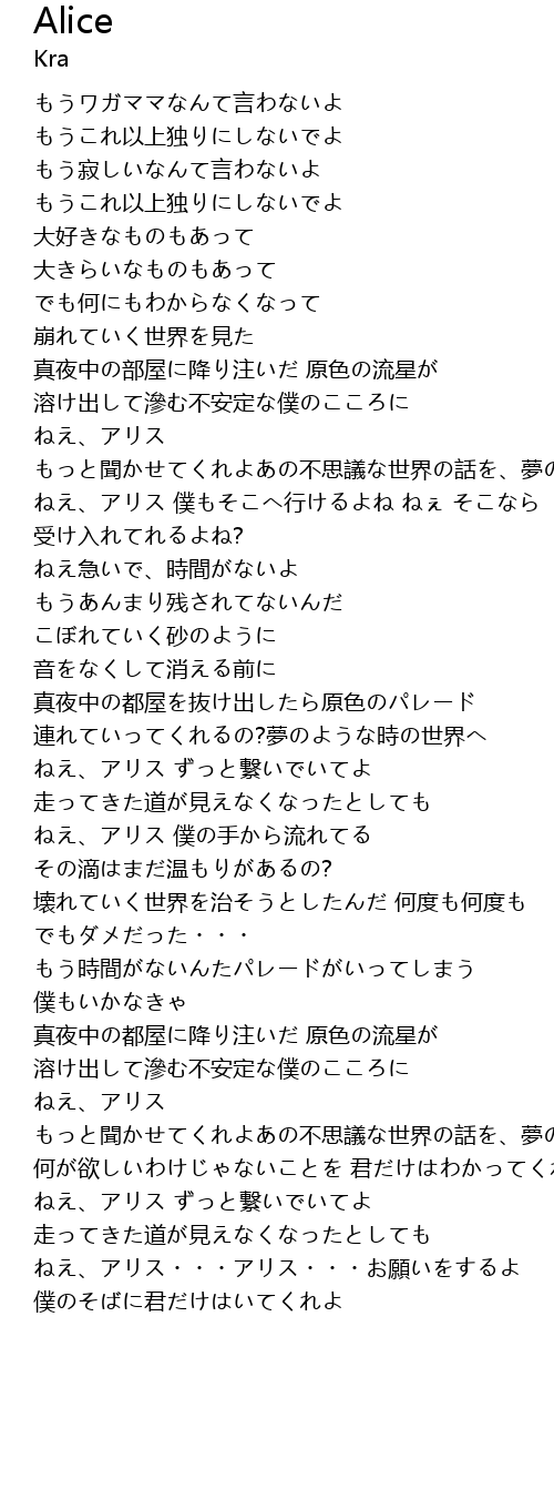 | ねえ、アリス・・・アリス・・・お願いをするよ 僕のそばに君だけはいてくれよ |