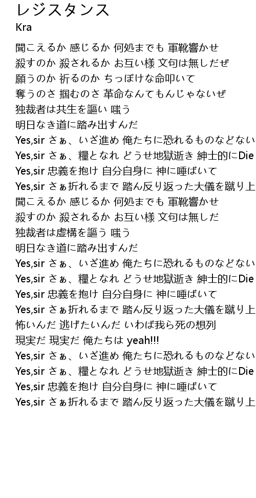 | Yes,sir さぁ折れるまで 踏ん反り返った大儀を蹴り上げろ | |